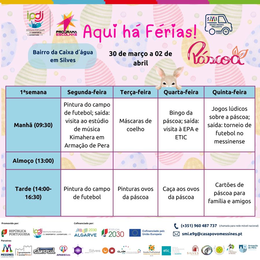 O projeto Silves Mesmo Inclusivo – E9G é um projeto promovido pela Secretaria de Estado da Juventude e do Desporto, através do Instituto Português do Desporto e Juventude, I.P. e é cofinanciado pelo Algarve 2030, Portugal 2030 e União Europeia. Tem o apoio da Junta de Freguesia de Silves.